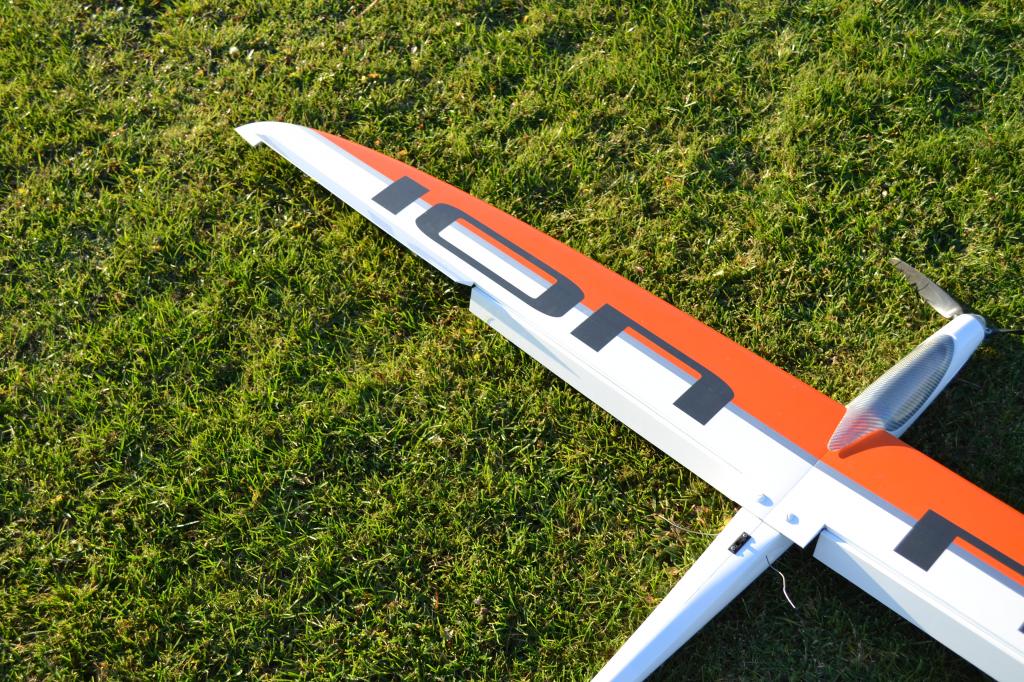 Chování na brzdách (butterfly) je čitelné a i na plných brzdách model výborně manévruje. Co mi trošku chybí, je větší brzdný účinek. Dnes jsem v pohodě přistál na 7 metrech (cca), ale já to umím, začátečník by měl radši model držet i na brzdách na vyšší rychlosti a provést klasické přistání (sestup-výdrž-podrovnání a dosednutí). Poměr hloubky klapek /křídla je 5,2/1. Mnohem lépe brzdící (např F3B ) má 4/1. Toto je moje malinká výtka co by šlo na modelu zlepšit.:-)