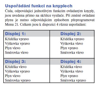 Ještě zvaž jestli někdy nebudeš chtít lítat doopravdy (sedět v tom). Tam je knipl vždy výškovka a křidélka (jedno kterou rukou). Prostě držet horizont jednou rukou.