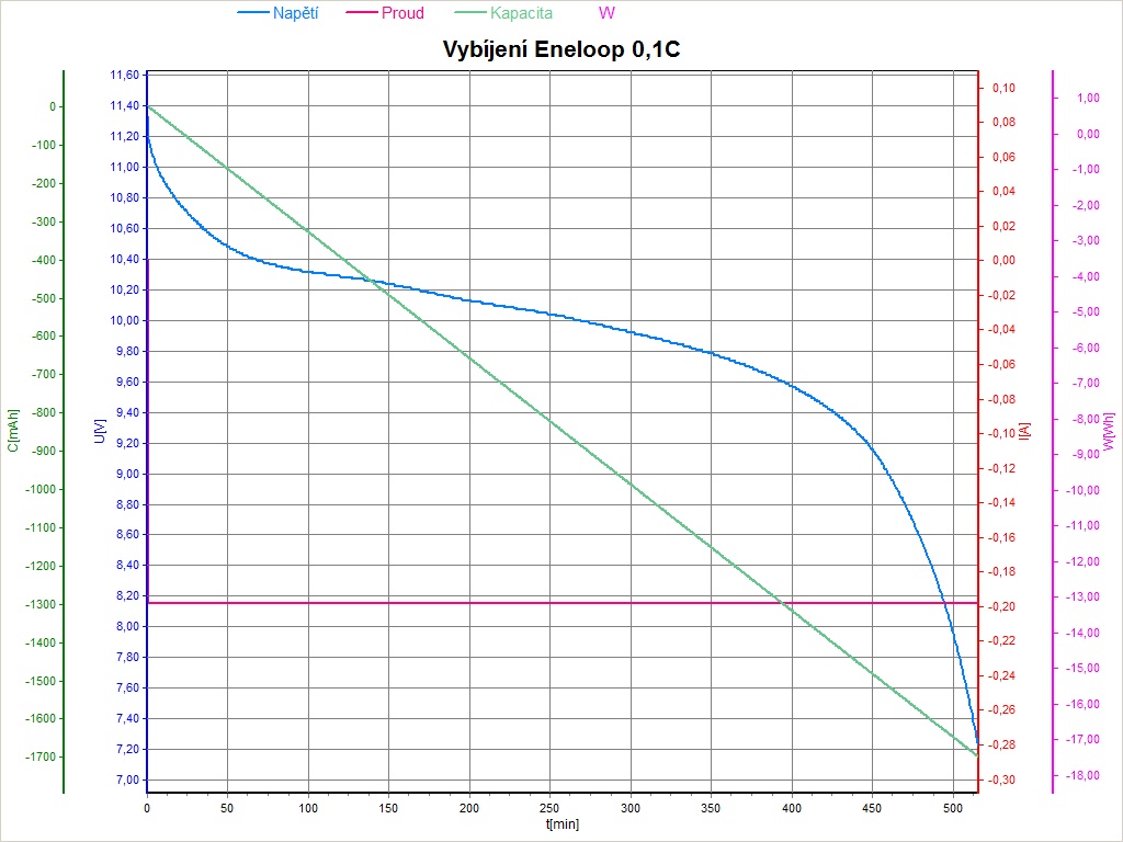 Ty 12 až 14 let staré Eneloop docela dobře 1.7 až 1.8 Ah mohly mít. Těch 0.2 A bych jako cca 0.1 C bral.