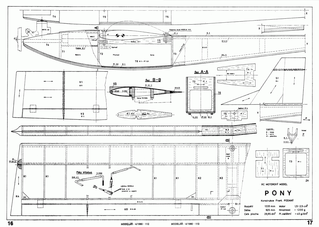 Když se dočasně mylně řešil PONY SAM78 ve spojeném vlákně, tak jsem tam dal plánek PONYho z Modeláře. Pak, po opětovném oddělení vláken, aby to lidi nemátlo, jsem dal ten obrázek s plánkem pryč. No, ale když už je ten obrázek k dispozici, tak ho přece jen přidám sem, kam patří. Třeba se to někomu bude hodit a je mi líto ho nevyužít.