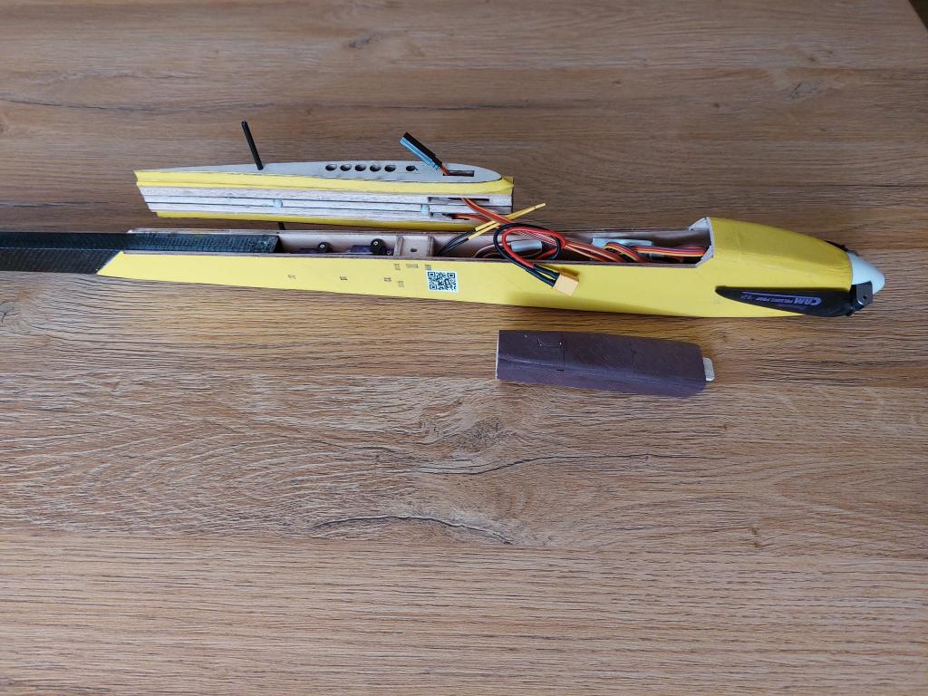 V současné době jsem se věnoval vývoji nového trupu. S nápadem přišel Jirka Hvězda. Vize byla udělat gondolu trupu nahoře rovnou s trubkou a odnímací centroplán křídla. Výhoda tohoto řešení je přesná stavba, kdy se trup staví na rovině "dnem nahoru" a nelze špatně zalepit trubku. Mimochodem trubka je obdélníkového průřezu, což také usnadňuje stavbu. Další výhoda je, že když se sundá centroplán a kabinka, je přístup do celé gondoly a tím pádem je snadná montáž serv a elektroniky. V neposlední řadě se dá i snadno měnit úhel náběhu křídla při zalétávání. Popřípadě měnit centroplán podle křídel (Nowind má jiný profil než Starcross). Výhody jsou jasné. Jako jedinou nevýhodu vidím vyšší váhu, ale je to pouze o 6g těžší než nový elektro trup Starcross, což je fakt malý rozdíl. O dalším vývoji budu informovat. Přikládám fotky prototypu trupu se kterým jsem létal teď v neděli v Podhořanech na letošní první soutěži F5L a s modelem vyhrál.