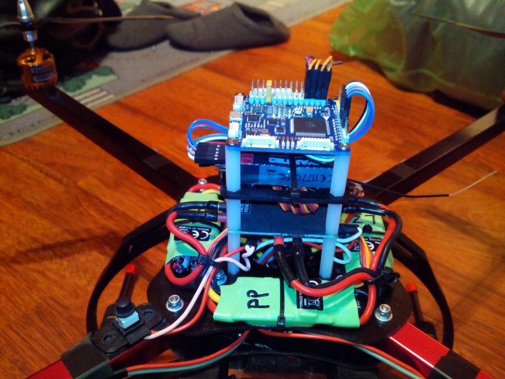 Navíc když zkouším kopterou otáčet a mám to připojený tak vidím že to fakt nefunguje tak jak má, na sever se mi ukazatel neotočí i když ve skutečnosti tam koptera je. Snažil jsem se regulátory a rozvod napájení dát co nejdál od řídící jednotky aby to neblblo ale koukněte na toto: