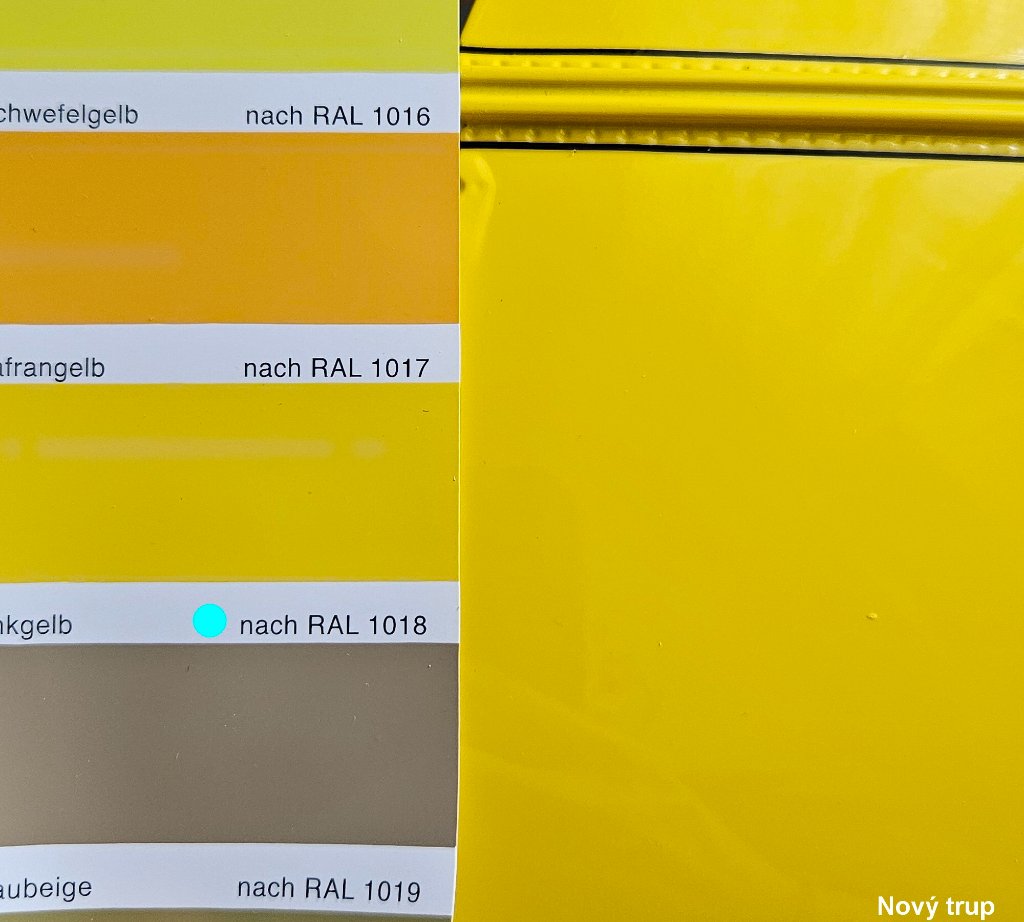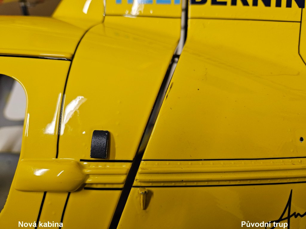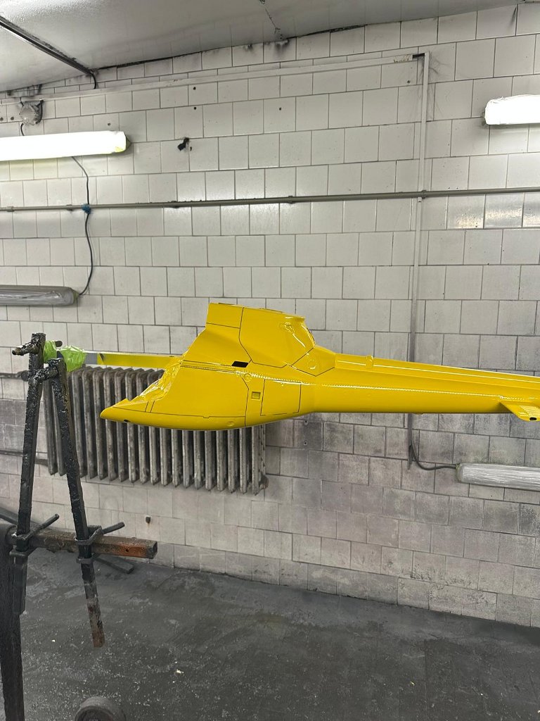 Když to porovnám s rokem 2024 tak plnič byl tmavší, jestli tam dali stejně bílé barvy nevím ale předpokládám že ano. Protože žlutá nekryje a bez bílé by jí tam padlo 3x tolik. Když to stříkali loni, tím že jsou to tři části ( trup, kabina a SOP ), hrozí tam že se to netrefí přesně a přesně to se stalo. SOP vyšla trochu chladnější a do zelena, bylo tam míň barvy. A bylo to vidět. Teď se stalo asi totéž ale jinde. Porovnával jsem to v různém světle a pozicích, vypadá to že spodek trupu v místech kde se nasazuje kabina má taky nepatrně míň barvy která je chladnější, méně intenzívní a výrazná. Když se sesadí nový trup a kabina tak je to vidět, ještě větší rozdíl je s původní kabinou což je škoda. Pruhy a nápisy to nepatrně zamaskují nicméně dobré oko to postřehne. Já holt díky tomu výtvarnému ve své profesi vidím sebemenší rozdíl což není vždycky výhoda :-).