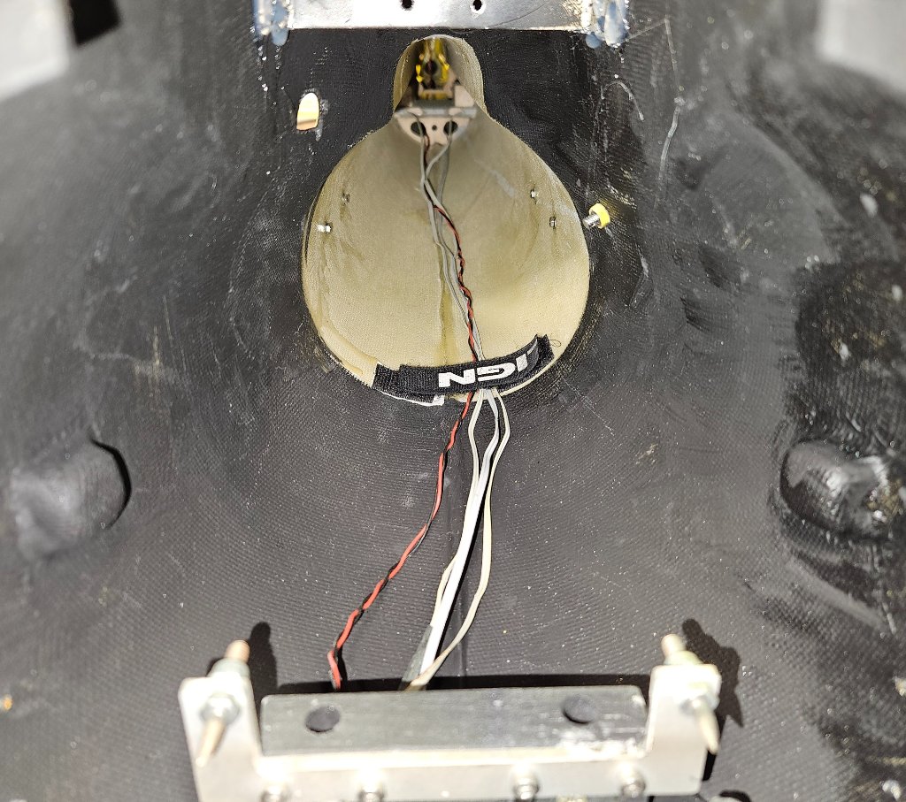 Pauza přes dva měsíce, to moc nepamatuju. Hodně práce, radši stavím víc kontinuálně než hoďku za týden. Poslední co jsem v září udělal byl černý nátěr vnitřku trupu což se hodilo, teď už matný Alkyton vůbec není cítit a dá se na tom dělat i v bytě. Výdech turbíny tištěný z pryskyřice mi spadl a ulomila se spodní manžeta, je to hodně křehké. Vymyslel jsem to proto jinak a výdech provrtal prodlouženým vrtákem tak aby byl na třmenu v trupu hodně pevný.