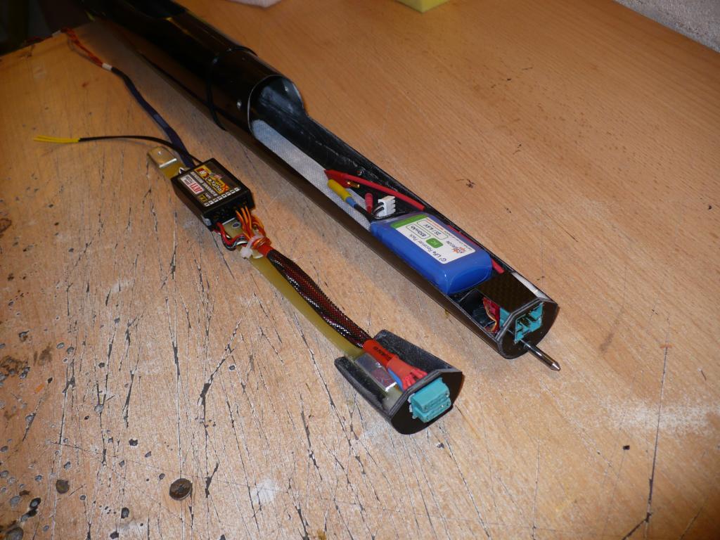 Punčošky jsou přilepené pod hřbet trupu. Navíc ty MPX konektory mají krycí destičku z uhlíku o délce cca 6cm.