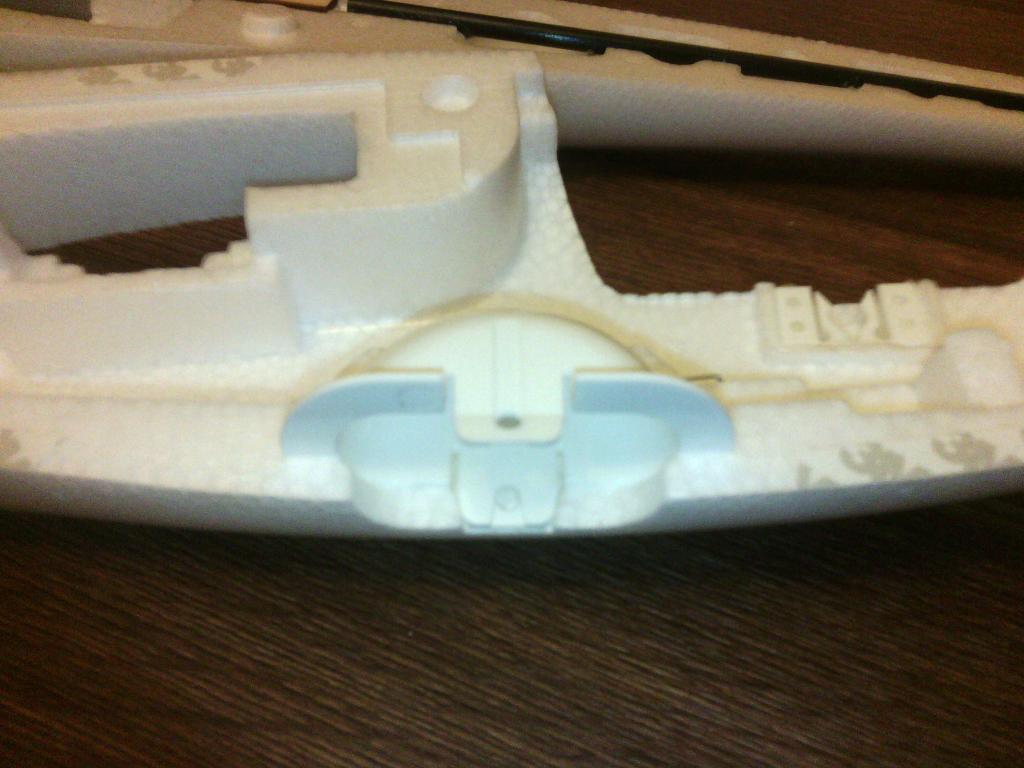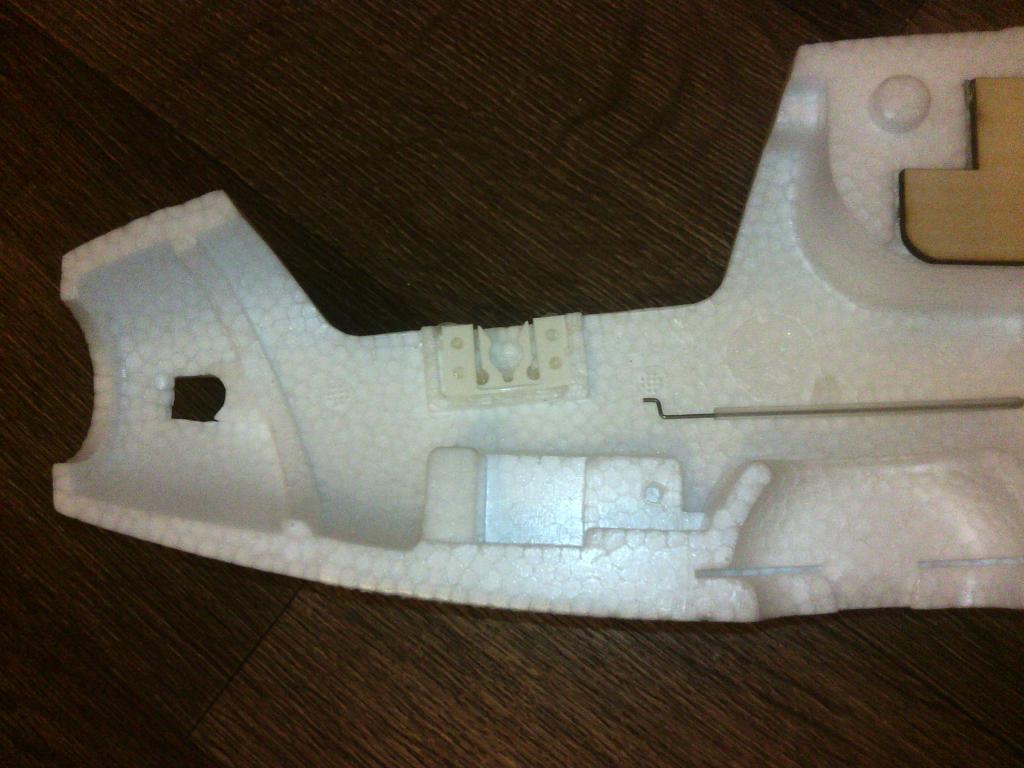 Po celém sestavení vyšlo těžiště celkem dobře (baterie na původním místě, přijímač za baterií (více vzadu) a regl těsně před baterií.