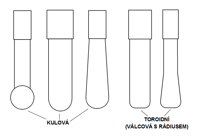 Jestli má na špičce polokouli, a pak je nahoru odlehčená kuželem, tak to nevadí a chová se jako kulová. Jestli je to ale kuželová s rádiusem menším než je popoměr frézy, tak se chová jako toridní a jako kulová použít nejde.