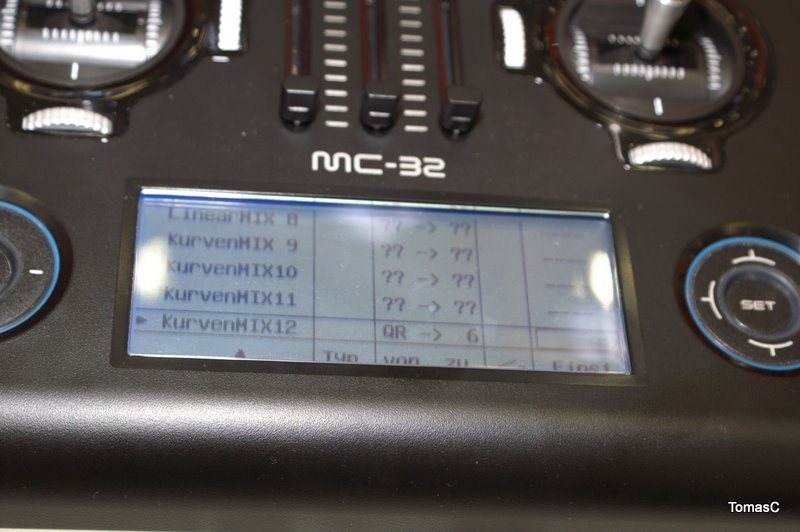 SW mě docela zklamal. Jde o vylepšený SW pro MC22. 8letových režimů. 8 3bodových a 4 křivkové volné mixy. Ale tohle se MUSÍ rozložit mezi všechny let režimy. Takže pro Stejně nastavený mix mohu v některých letových režimech aktivovat nabo deaktivovat. Tohle je dost omezení.