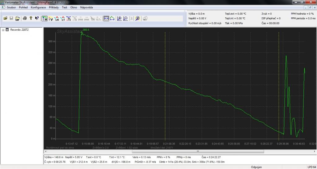 Připojuji graf z dneška - to bys nevěřil, jak jsem vyzuřil syna při naší "privátní soutěži" v tomhle letu, když už se viděl jako vítěz (totální sračky, ale přece jen na tom byl lépe), když jsem se od pozice grafu cca 200s začal točit nad zemí a vytloukl jsem z toho další zhruba dvě minuty :D No a o tomhle to je...