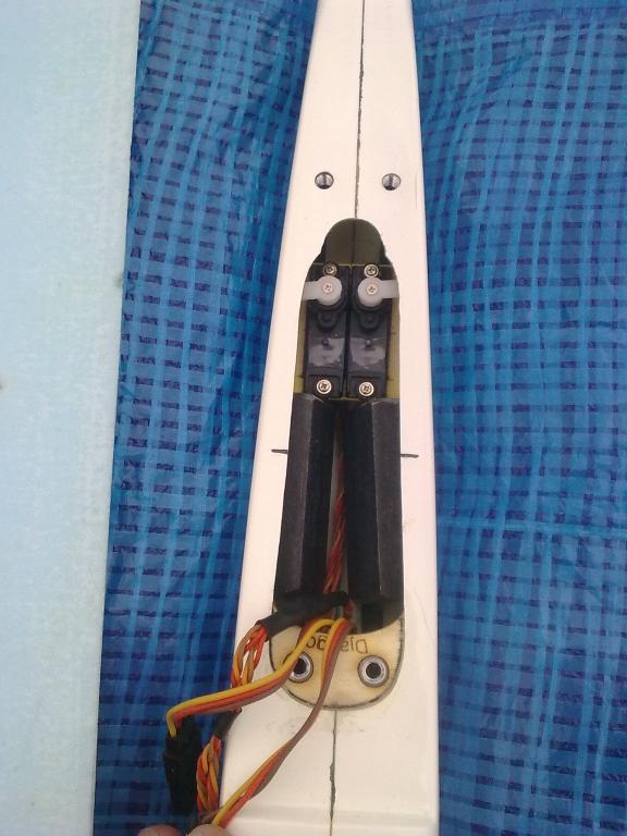Drift křidélek nebyl způsoben servy ale povytaženým konektorem na potenciometru pravého gimbalu rádia - známá to "závada" prvních sérií Taranise X9E (propojovací kablíky jsou tvrdé a při pohybu "plynovou" pákou časem povytáhnou konektor). Na vstupu to pak jezdí až o několik % - odkaz na video: https://www.youtube.com/watch?v=_4hM_7xKRo0