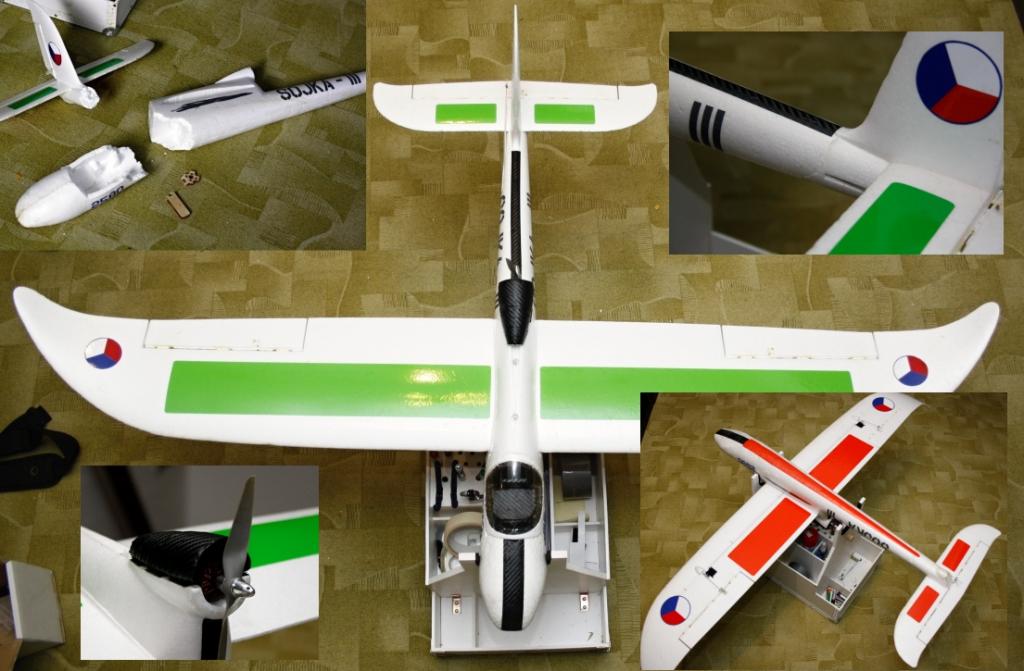 Ač jsem si myslel, že to už nedám dokupy, povedlo se a zejtra jdu na novej zálet. Největší radost mám z opravy předku trupu a kabinky, obojí bylo asi o třetinu kratší a na 10 kusů. Díky jag42 za tip s párátkama - fakt super. Všechny problémy co jsem psal výše se mi podařilo vyřešit až na jeden a to je ohnutá hřídel - to nejhorší jsem srovnal, ale trochu to vibruje pořád - víte o nějakým motoru z HK, co tam jde dát? psalo se tu o 2200 ot. / volt, ale všechny co jsem našel a maj ty otáčky mi přijdou dost malý a maj malej výkon. Víte někdo, kolik by ten motor měl mít W a jaký jsou parametry origo motoru? - resp. má tam někdo nějakej jinej motor a jakej? Případně i foxy nebo ray. Za náhradní se mi fakt přes 500 dávat nechce, aby se mi třeba ta hřídel ohnula znova, když náhradní nejde sehnat. Díky.