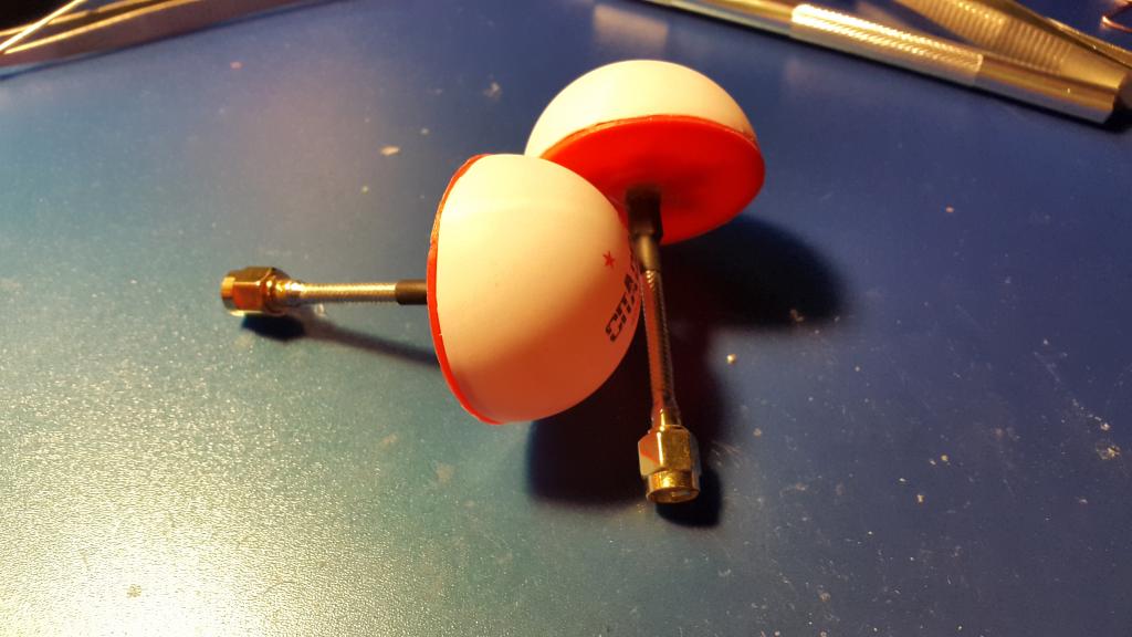 .. Byl jsem až tak potěšen že jsem vybavil anténkami celý náš Pardubický FPV "klan" a všichni jsou nadmíru spokojeni a nic jiného už nechtějí.. Díky přípravkům jsou všechny anténky naprosto totožné a nejsou mezi nimi žádné rozdíly, zatím jsem zhotovil sedm párů a všechny jsou dokonalé. Přidávám foto hotových antének a zde http://arcicorsa.rajce.idnes.cz/5.8Ghz_antenky_s_kruhovou_polarizaci je vidět co se skrývá pod kloboučkem