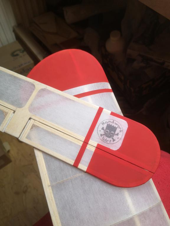 Po nalakovaní napínacím lakem a jeho proschnutí jsem maličko barevně šplíchl konce ploch akrylátem Tamiya.
