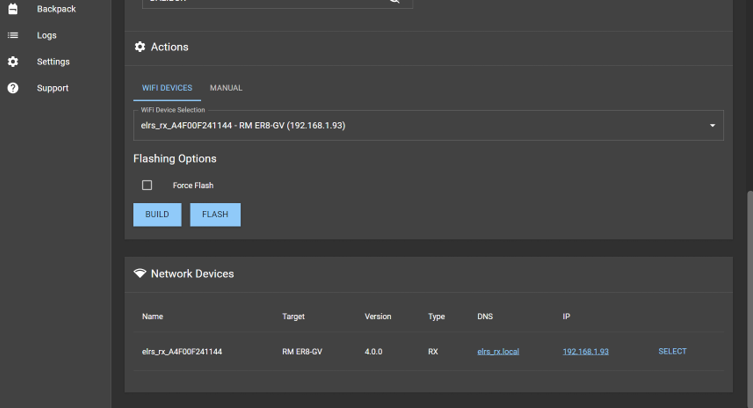 No právě že v tom konfigurátoru dáváš (u WiFi metody) pouze BUILD (nikoliv FLASH), udělá ti to .bin soubor. Takto si připravíš ty binárky pro všechny své přijímače a moduly (vhodně si je pojmenuješ).graup15 píše: pon 16.02.2026 11:58 Tak jak to funguje jemu..to mne nefunguje. Jakmile se objeví ve WiFi , ELRS z přijíamče (po těch 60s) tak se mi okamžitě odpojí noťas z wifi sítě co mám doma.