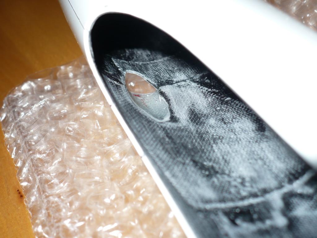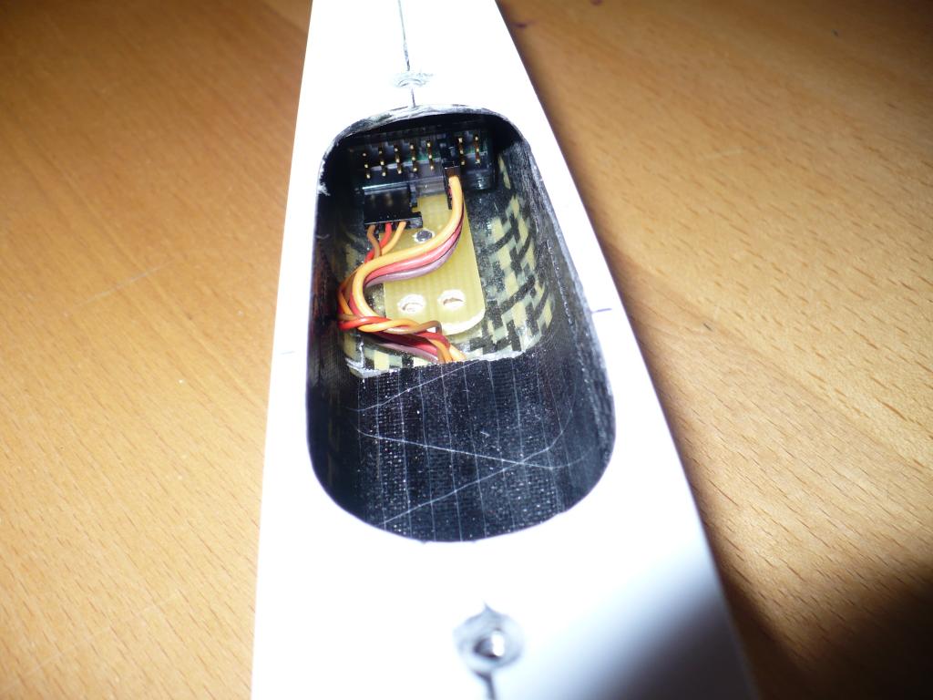 Jo..v trupu je zalepená pod přijímačem překližková destička (aby se vykompenzoval rádius trupu a přijímač seděl na rovině. Tato je přelaminovaná aby časem neodskočila--viz lepení 5 minuťákem)