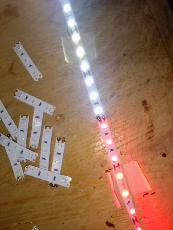 A ještě taková úsměvná událost když jsem dělal osvětlení. V jednu chvíli jsem měl hlavu hooodně zamotanou proč mě prostě červená a bílá po připájení k sobě podle polarity nesvítí najednou, ale vždy jen půlka!