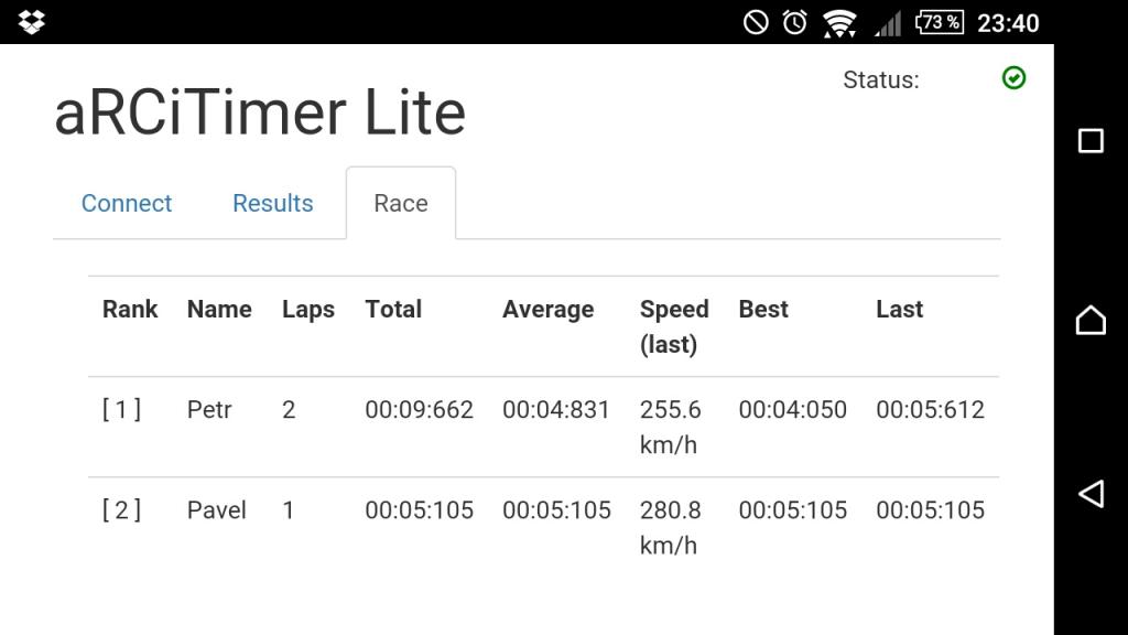 Systém byl také nasazen na závodech Miniquad race Ostrava kde se ověřila jeho funkčnost v praxi. S výsledky jsme naprosto spokojeni protože vše šlapalo na první dobrou bez sebemenšího zaváhání na rozdíl od jiných systémů
