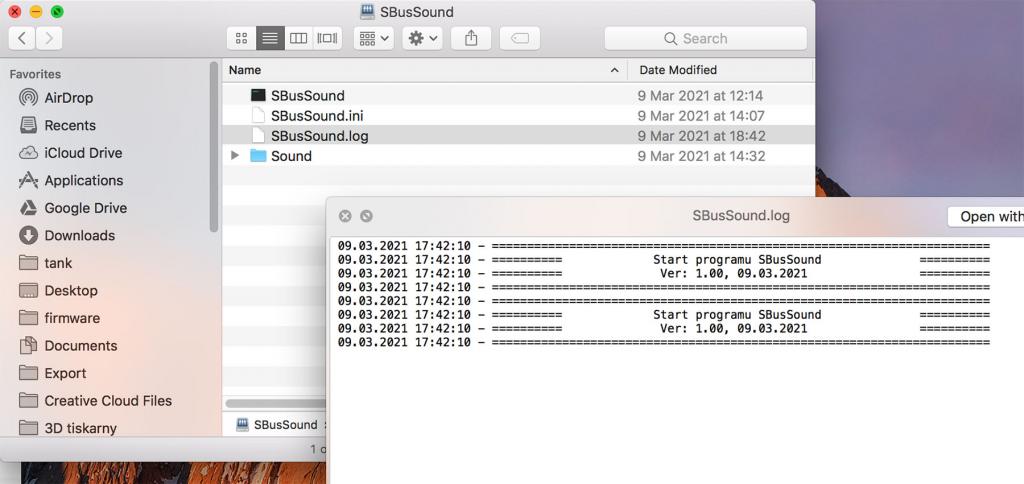 Udělal jsem to stejně, a soubor SBusSound.log se vytvořil.