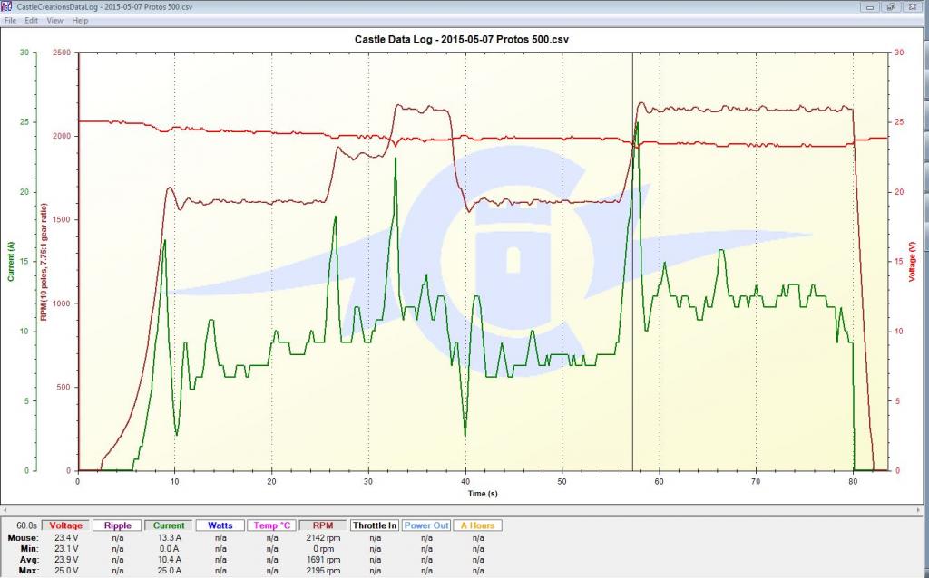 No, tak nakonec se kolega uvolil, že se mnou půjde na druhý ostrý let. Tady máte teda to video, v příloze je graf z logu který ilustruje to přepínání otáček. Letovou dovednost prosím nekomentovat, ruky mám roztřesené ještě teď.