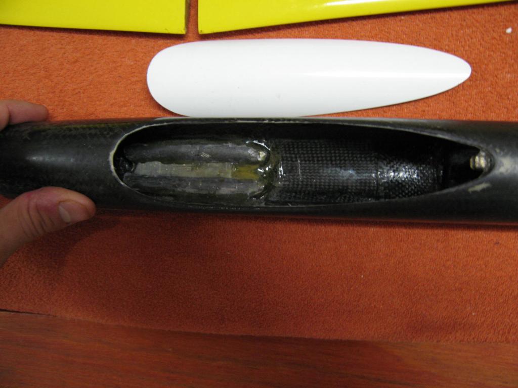 jinak jak máš ruplé to pouzdro,něco podobného ale jen ucho jsem opravil omotáním v kraji kevlarovou nití-teda rovingem,vedle pouzdra díry až na potah a celé omotoné- jen v kraji , pár zápichu a krkolomějších přistání už to má za sebou a stále to drží,jen už nemám morál ten model dovážit kilovou štanglí.