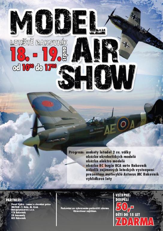 Dovoluji si Vás pozvat na Model Air Show 2012 v Rakovníku. Akce je dva dni a uskuteční se v termínu 18.8. - 19.8. 2012 na letišti aeroklubu Rakovník.