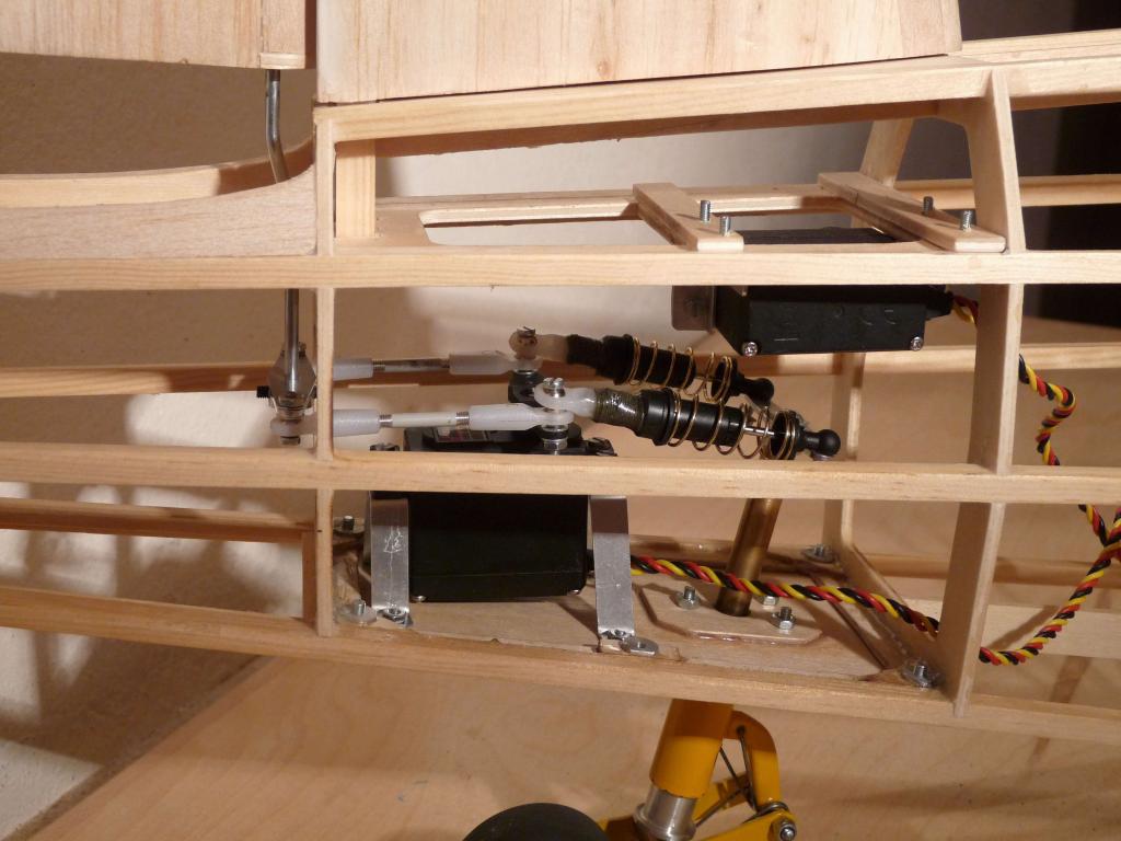 Jak to je přesně u té PC-6 nevím, ale na svého Čmeldu jsem řešil podobný problém a nakonec jsem udělal na spodek trupu odnímací víko, na kterém je jak ostruha, tak servo směrovky. Směrovka je napřímo a ostruha je ovládaná přes auťákové tlumiče (předpružené). Všechno je na kulákách, takže bezproblémový přístup pro případné opravy. Ještě je to ve stavbě, tak jsem zvědavý jak se to bude chovat. Je to ale obráceně než na PC-6 (ostruha před směrovkou) ale snad ti to pomůže v inspiraci. Fotky řeknou víc: