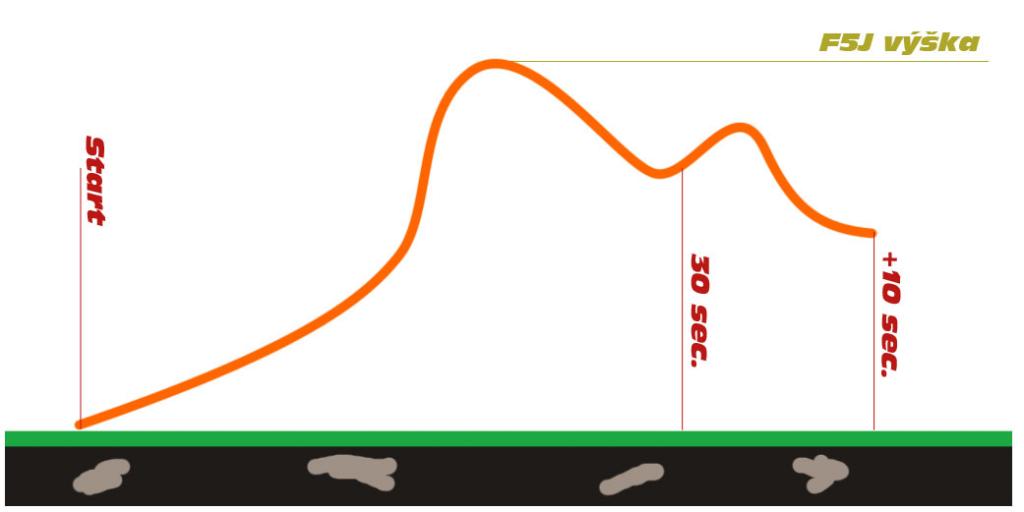 - F5J výška (vypínací výška) je maximální výška dosažená v časovém úseku od vypuštění modelu (úplně přesně od zapnutí výškoměru, což se provádí na startovišti před startem) až po 10 vteřin po vypnutí motoru.