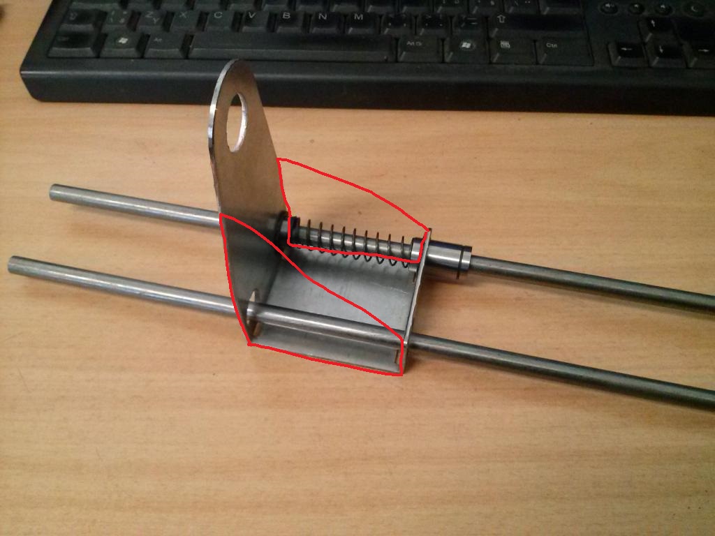 Hlavní sloup má průměr 13,5 (přebroušená 14 hlazenka) a zadní má průměr 10. Ta páka se dá udělat jednoduší s pomocným ramínkem viz. obr.