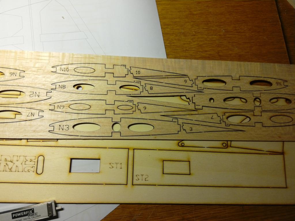 problém je v tom, že mám kúpený "Short kit" rebrá sú vyrezané, vrátane otvorov pre spojky.... Oproti plánom kde je nosník s uhlíkovej trubky a do nej sa zasúva spojka - je konštrukcia pozmenená na krídlo s nosníkmi 5*10 a medzi nimi vlepené púzdra a do nich sa zasúvajú spojky.... Totálna klasika ...... ale ......