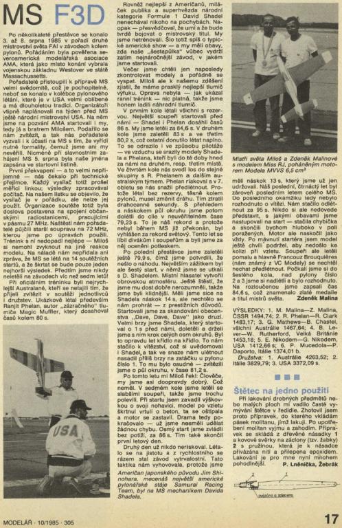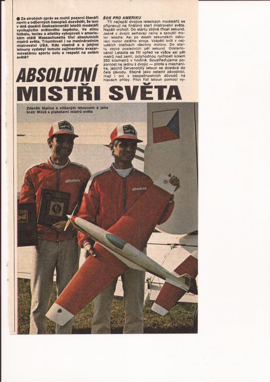 velmi nutně sháním scan/přepis/čitelnou fotku článku (myslím z ABC / Modelář), jak se bratři Malinové stali v Chicopee, Massachussets (USA) mistry světa v kategorii pylonů F3D.