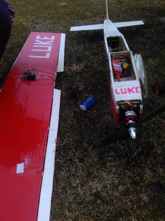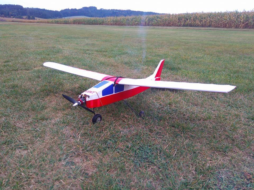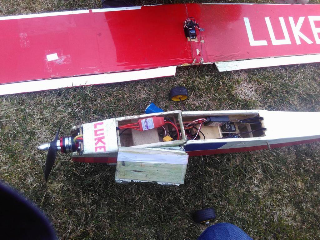 Letadlo je z balsy a rozpětí má zhruba 1400mm. Na křidélka má jedno servo. Za cenu 2000,- dostanu model letadla, motor, vrtuly, regulátor, tři serva a modul pro LEDky. Takže jakoby vše bez nabíječky, baterek, přijimače a vysílačky.
