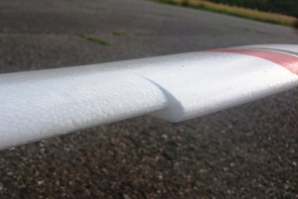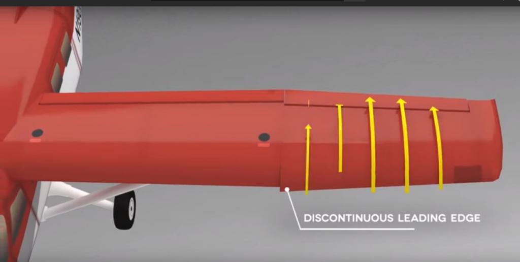 z fotky to vypadá že ta rozšířená část křídla bude mít nižší úhel náběhu, což znamená že se tam budou proudnice rvát později než na zbytku křídla, takže lepší pádové vlastnosti... ale jen odhad z fotky...