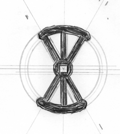 Vnější průměr je 50 mm, vnitřní průměr 40 mm, takže síla toho mezikruží je 5 mm. Středový kruh je o průměru 10 mm, vnitřní čtverec má délku strany 3 mm. Ramena výseče mají 3 mm, úhel kruhové výseče je 60 stupňů.