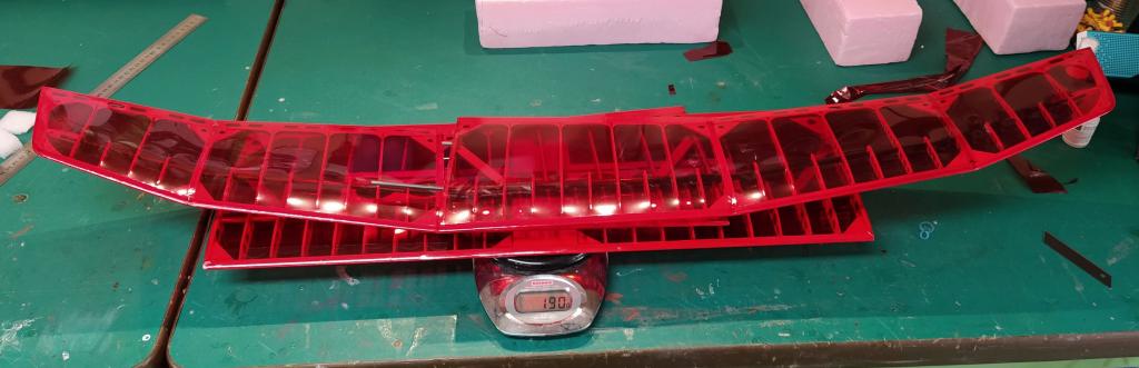 Pro inspiraci přikládám téměř hotová křídla, bez klapky váží 190 gramů, folie je Oralight.