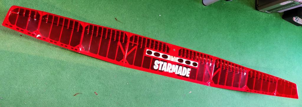 RESek není doma a na letišti nikdy dost a tak mi přišla stavebnice Starmade MkII, což je podle popisu výrobce soutěžně naladěný klon Starmade RES1, který je stavebně i letově určen pro začátečníky zejména z řad kroužků mládeže, nebo i pro stavbu doma, je možnost stažení velmi podrobného video návodu. Verze MkII. z tohoto modelu vychází, trup a křídla jsou zaměnitelné, avšak tady jde o pokračovací model velmi vhodný k soutěžení. Křídlo je lépe aerodynamicky zkonstruováno, staví se na "můstcích" a tedy negativy jsou dané výrobcem. Odtoková lišta je broušena na hotovo do klínu, náběžka rovněž. Trup - balsová hlavice je minimalizovaná, zadní část tvoří kuželová kompozitová trubka o hmotnosti 11g. Ocasní plochy jsou konstrukční, je možnost postavit si variantu s plovoucí VOP, jen je třeba to uvést v objednávce. kozlík VOP je tištěn 3D. Model je maximálně předpracován.