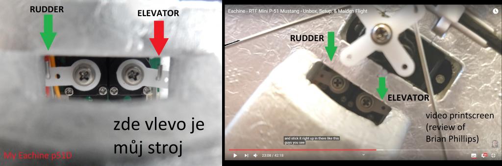 V jedné recenzi tohoto modelu na Youtube byl zachycen záběr, ze kterého je zřejmé, že táhla směrovky i výškovky jsou zapojeny