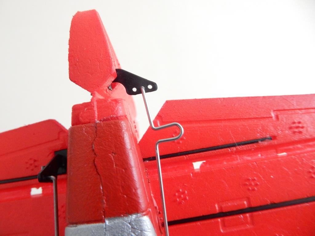 Snad už chápu, myslím si, že to, co označujete jako páku kormidla jsem výše (nesprávně) označoval jako "plastové "ramínko". Příložil jsem snímky výškovky a směrovky.