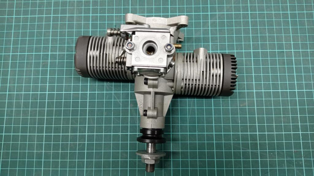 Při pokusech dosažení co nejnižšího volnoběhu stále zhasínal jeden válec, to jsem vyřešil odebráním podložky z pod hlavy válce. Palivo na rozdíl od kolegy si míchám sám. Metanol a 8% syntetického oleje, ricinový olej už mnoho let nepoužívám.