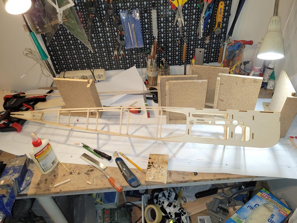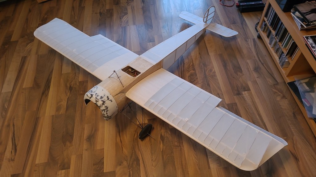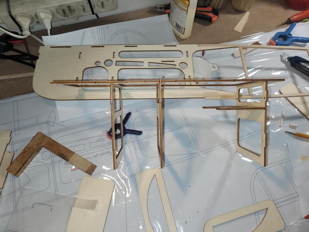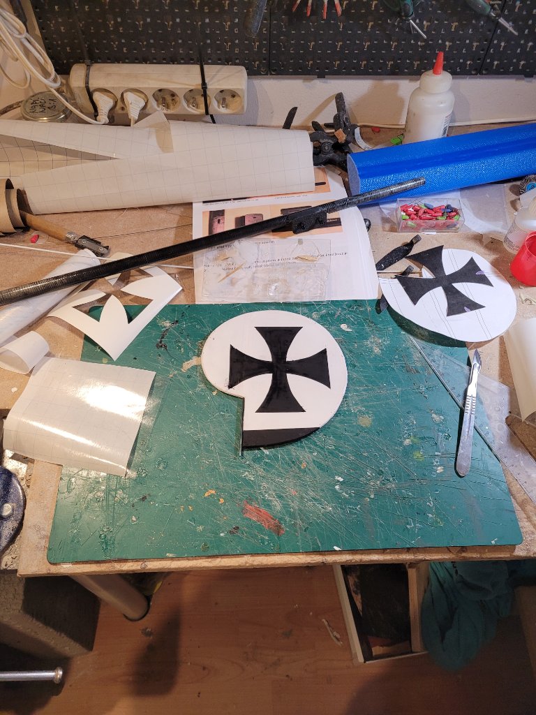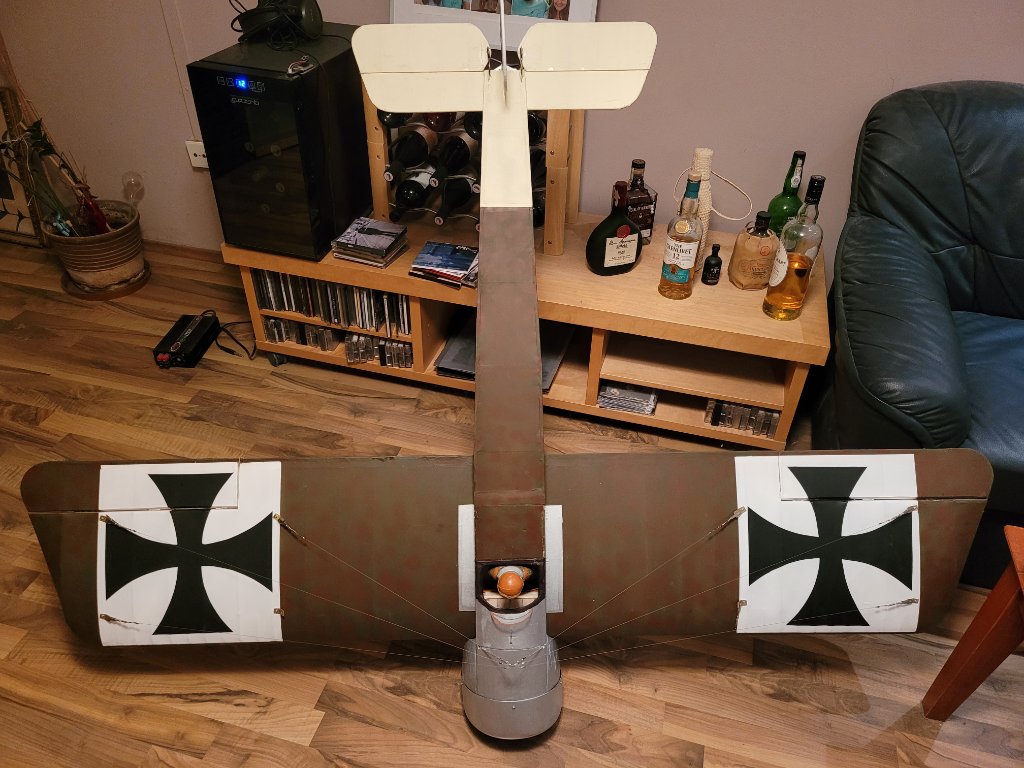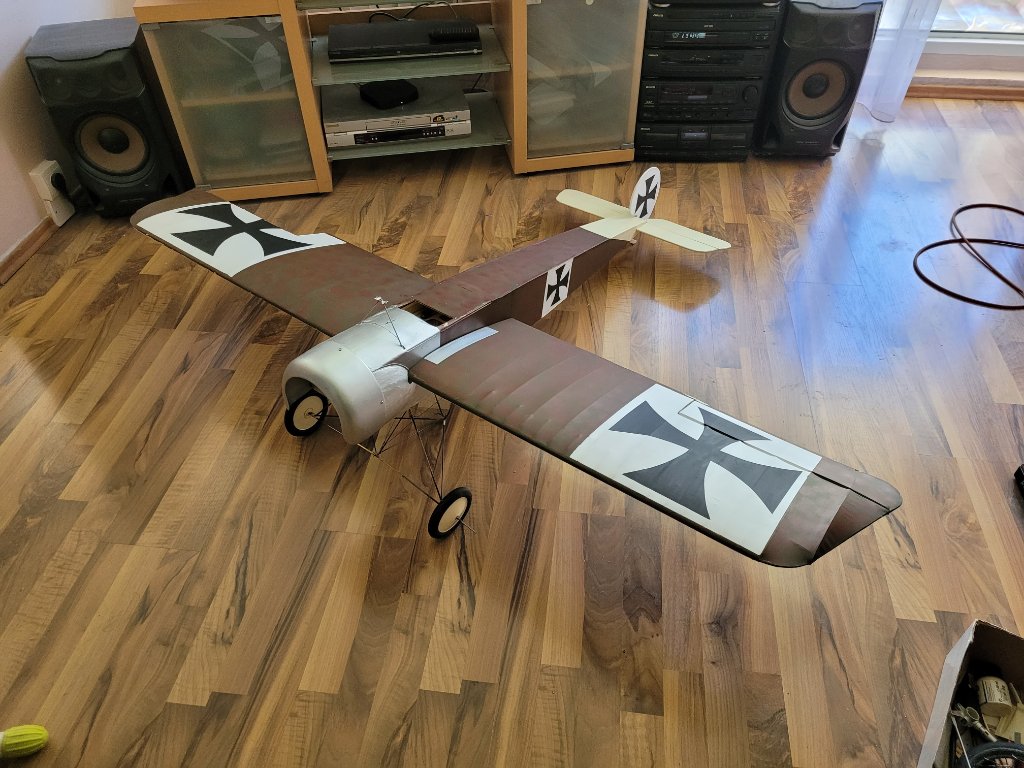 Původně jsem chtěl stavět Pfalz E V podle plánku z RCRevue, zvětšeného na 180%. Už jsem měl i nazvětšovaný plán, dokonce nakoupený materiál a vyřezané díly trupu, když jsem na modelbazaru objevil výřezy na Fokker E III. V tu chvíli zvítězila lenost, a změnil jsem předlohu