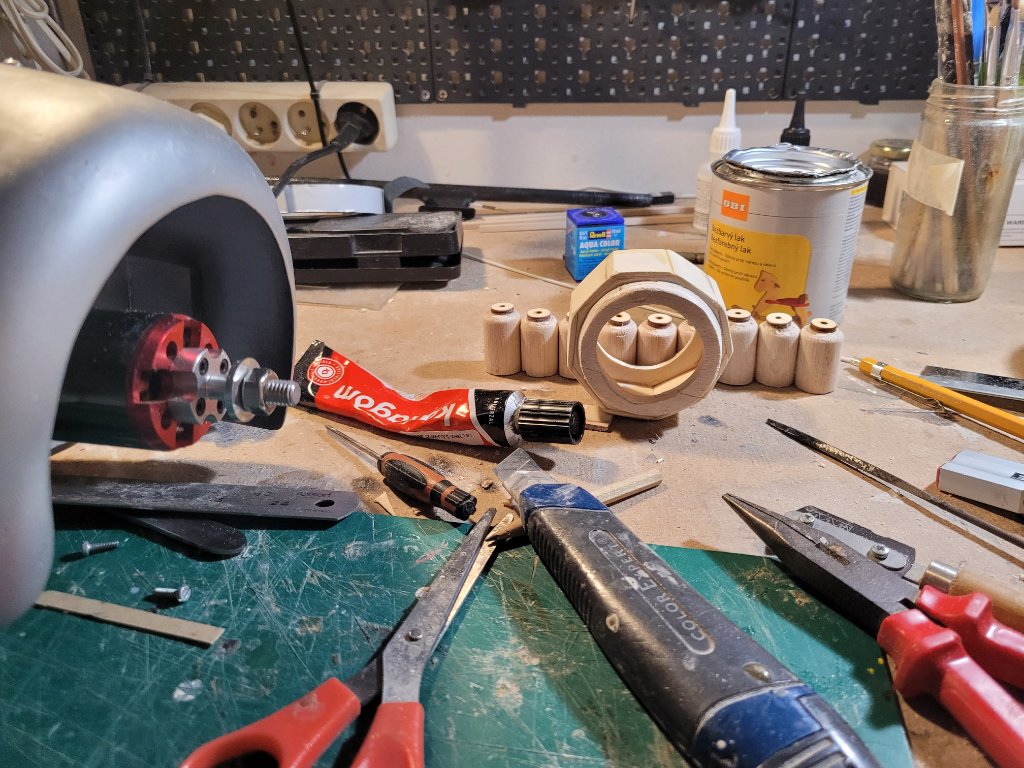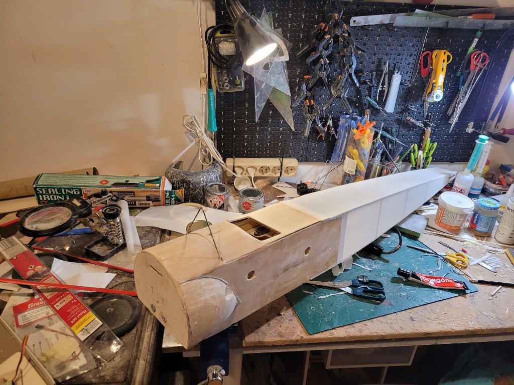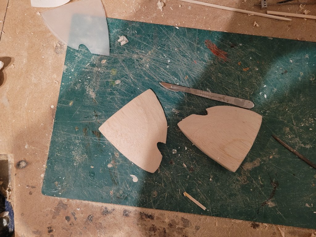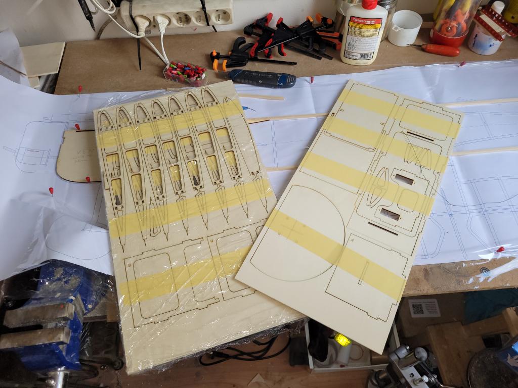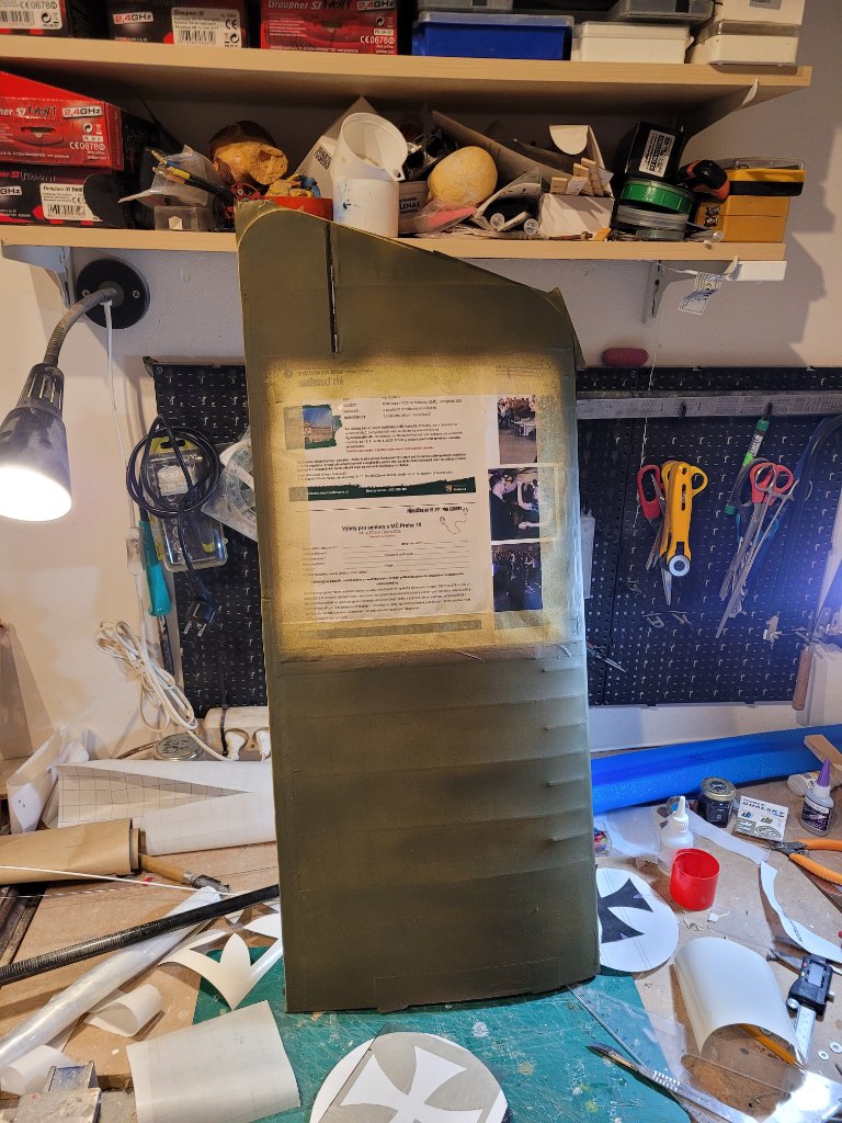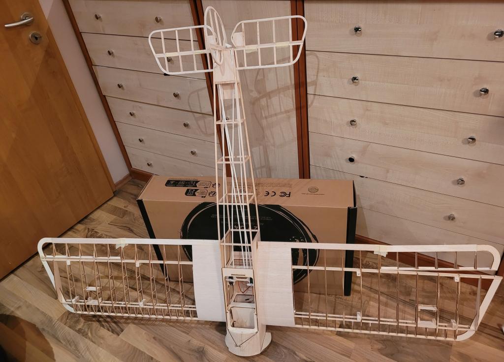 Původně jsem chtěl stavět Pfalz E V podle plánku z RCRevue, zvětšeného na 180%. Už jsem měl i nazvětšovaný plán, dokonce nakoupený materiál a vyřezané díly trupu, když jsem na modelbazaru objevil výřezy na Fokker E III. V tu chvíli zvítězila lenost, a změnil jsem předlohu
