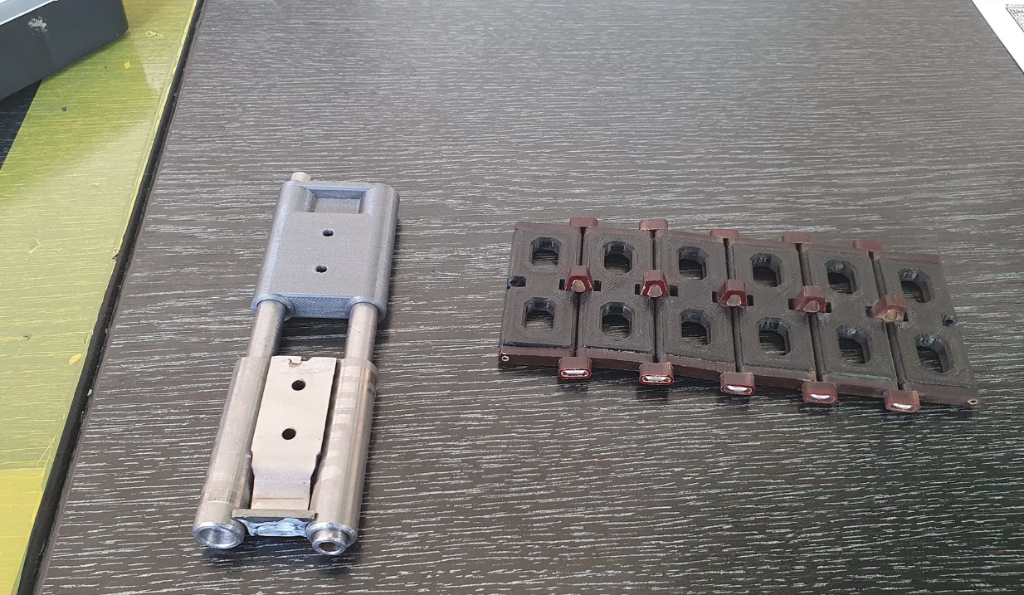 Porovnání prototypu pásů 1:5 s částečně tištěnými 1:10 Polovina článku pásu