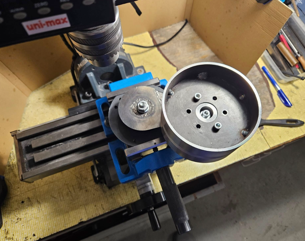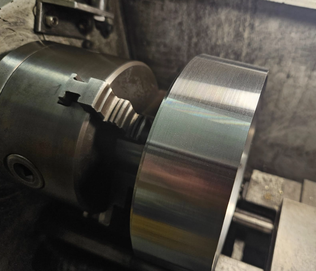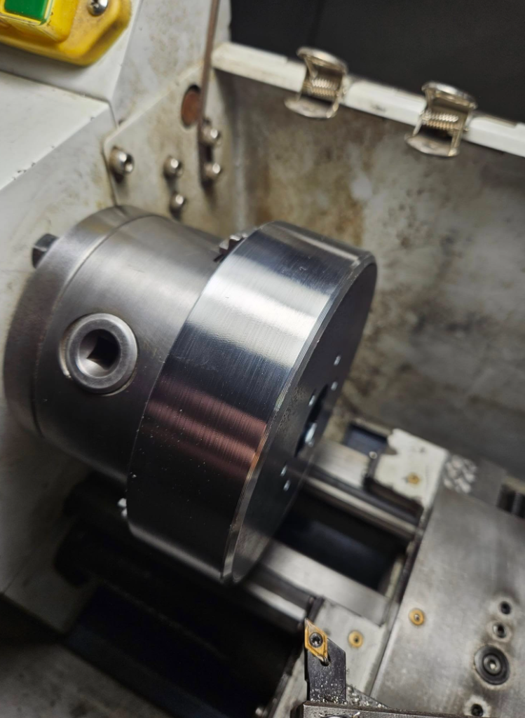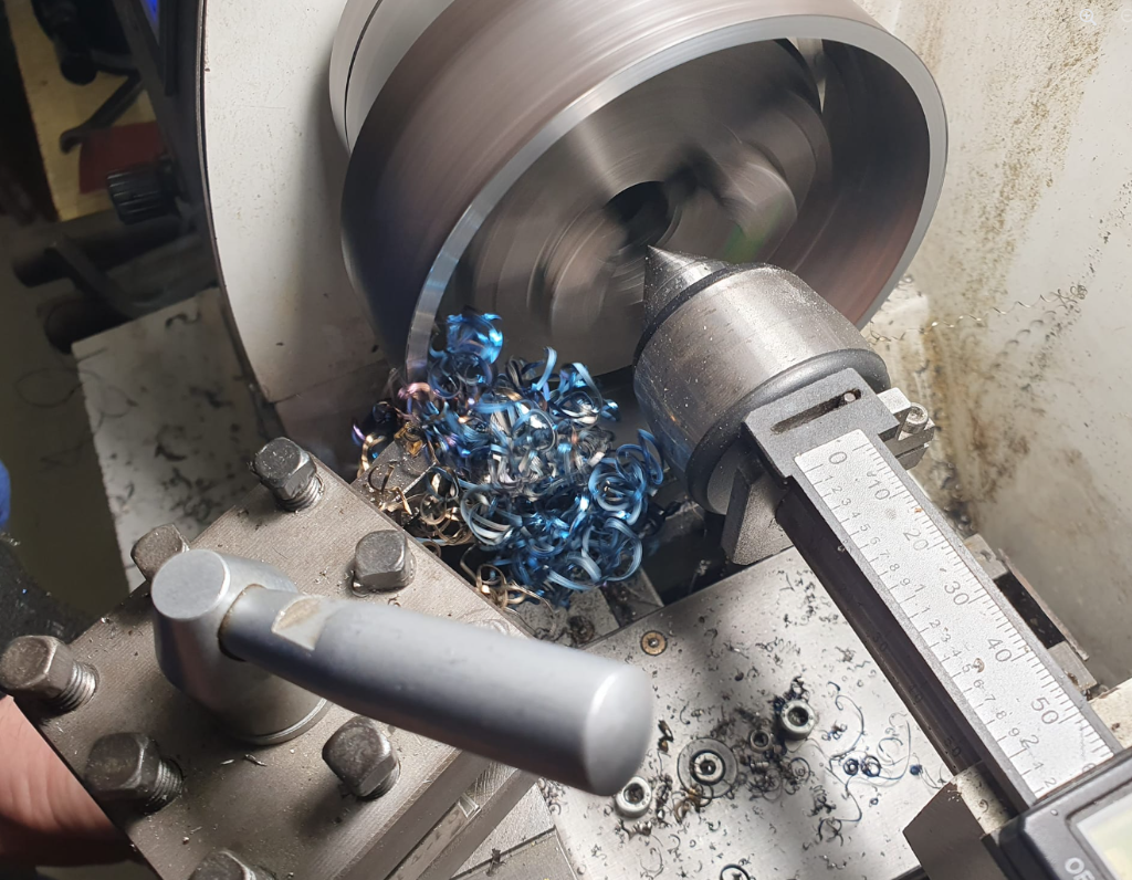 Obrábění pojezdového kola, čínské destičky fungují sice krátce, ale zase nejsou tak drahé.