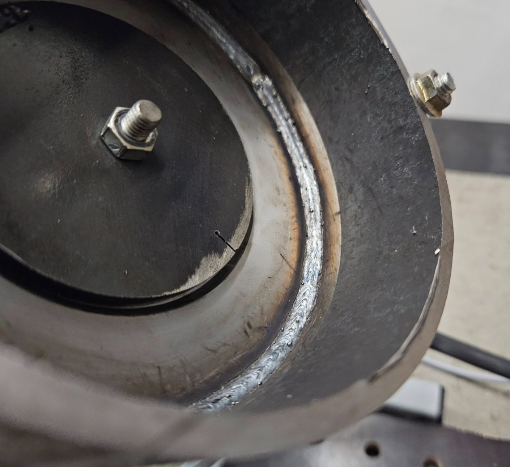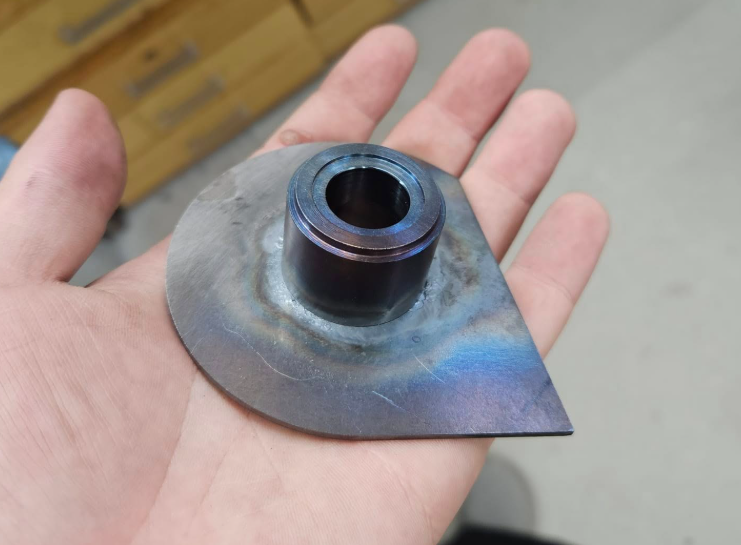 Pouzdro kyvného ramena, svářeno TIGem ručně.