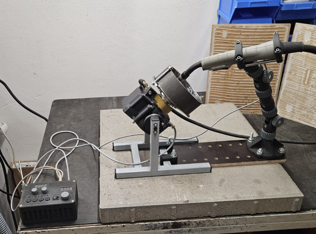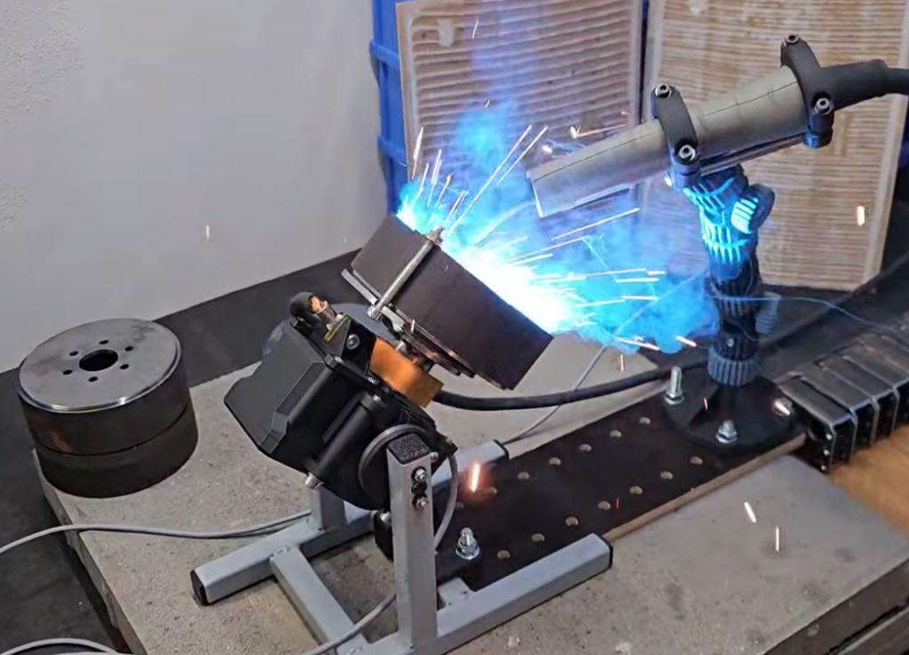 Rotační svářecí polohovadlo, hořák MAG, pohon krokovým motorem, řízení Arduinem.