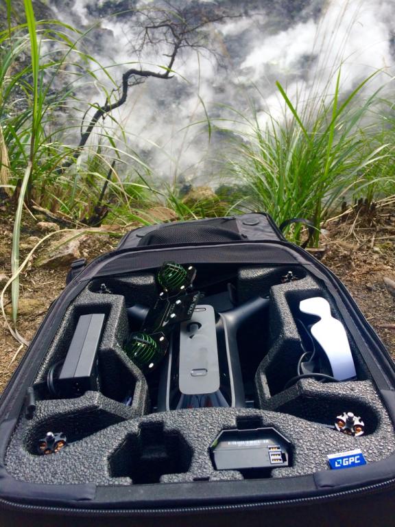 Tak jsem dnes chvilku před startem vyfotil Petrovi Backpack od 3DR. Jsou vidět antény od Tonyho a brýle Cinemizer od "Cajze". Ještě je tam místo na tři baterky