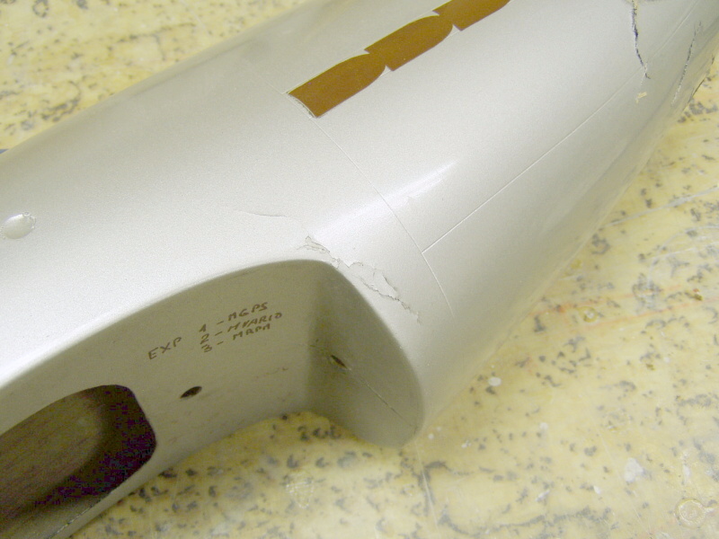 ...motor včetně přepážky a kusu přední části trupu sepo ráně lehce posunul k ocasní části letadla a …