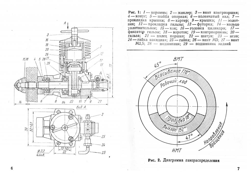 A ešte z návodu dvojstrana, kde je rez motorom a fázový diagram.