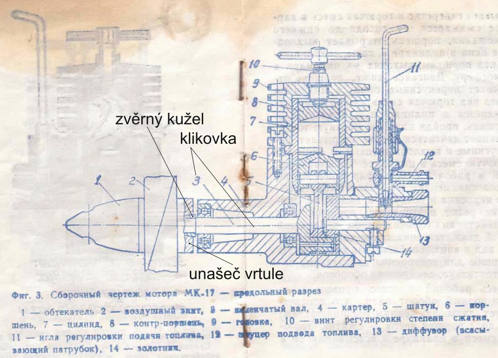 Ten Marz jsem dostal jen holý motor, prostě se mi líbil. Ale ze zvědavosti bych rád viděl, jak to celé vypadalo. Souvětí tyhle věci dost často prodávali jako kompletní set, tedy motor, nějaký klíč, upevňovací šrouby a vrtule. Ta byla většinou dost strašná. Aspoň MK 17 a Raduga 7 to tak měly. OTM ale ne, to byl jen motor s klíčem, už nevím, jestli tam byly šroubky. Vrtule měla upravenou dosedací plochu, aby sedla na drážky unašeče. Nemohla se tak nikdy protočit.