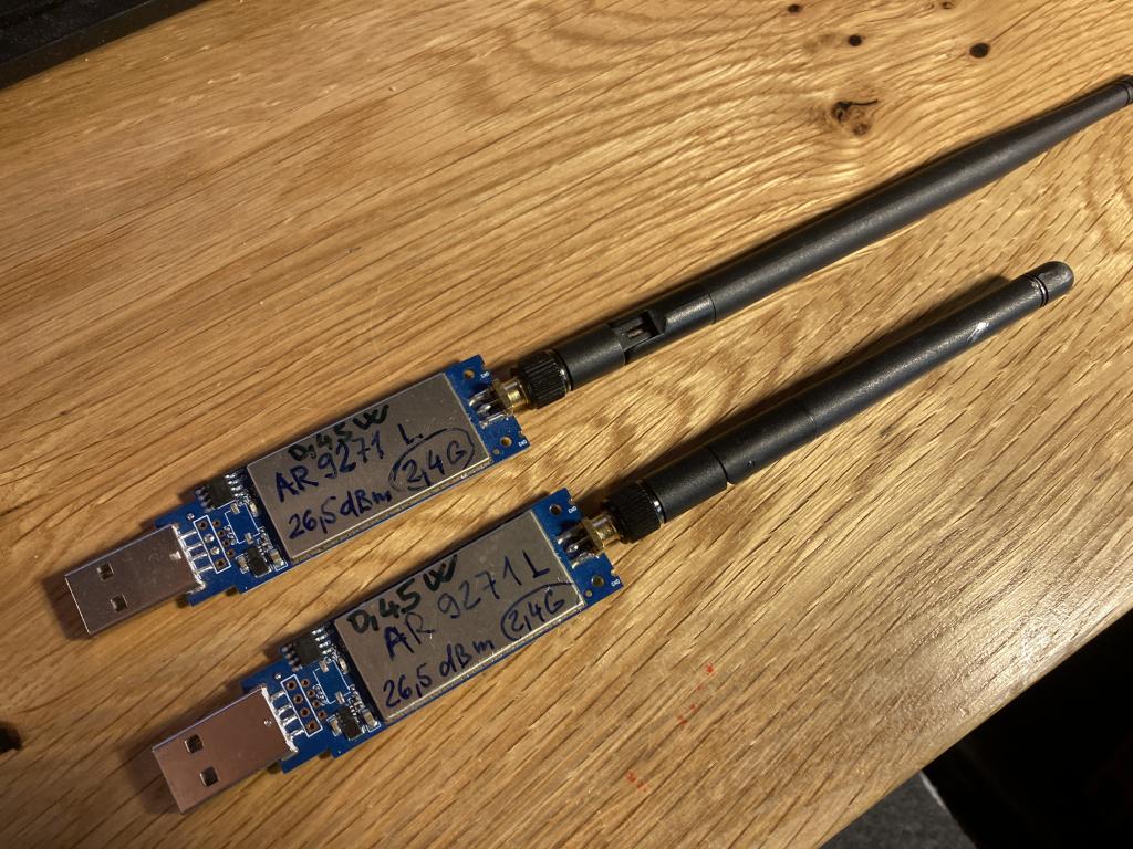 Jako první jsem koupil 2,4 GHz kartičky s čipsetem AR9271L, podle recenzí mají chodit docelal daleko (P=0,45W - prosím neřešte legálnost, jedná se o test a vědecký výzkum