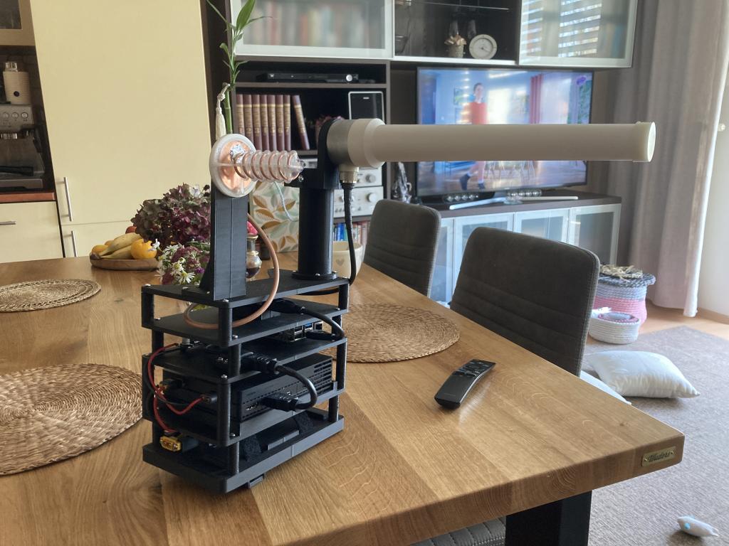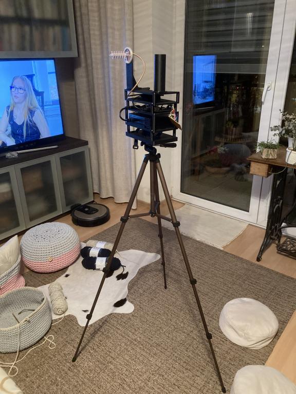 Air station tedy pozůstávala nejdříve (ještě na stole) z Raspberry PI Zero2, z WiFi kartičky 2,4 GHz a z levné kamerky RPI camera v.2.